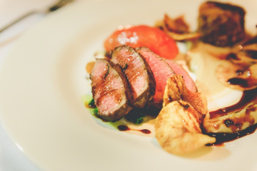 Before we knew it, it was dinner time. We took the handy torch and headed out down the path, now lit by lanterns, to the main house. Executive Chef Hadleigh Barratt and his team of talented chefs prepared an exquisite meal, using local, seasonal ingredients. Dishes included best end of lamb, braised shoulder, tomato fondue, smoked aubergine puree and basil jus. The lamb was so well rested, I’m sure it had spent a night in the treehouse beforehand. The Walled Garden salad had been freshly picked from their bourgeoning kitchen garden. This was followed with a conversation-killingly tasty caramelised peach, raspberry granola, almond ice cream.