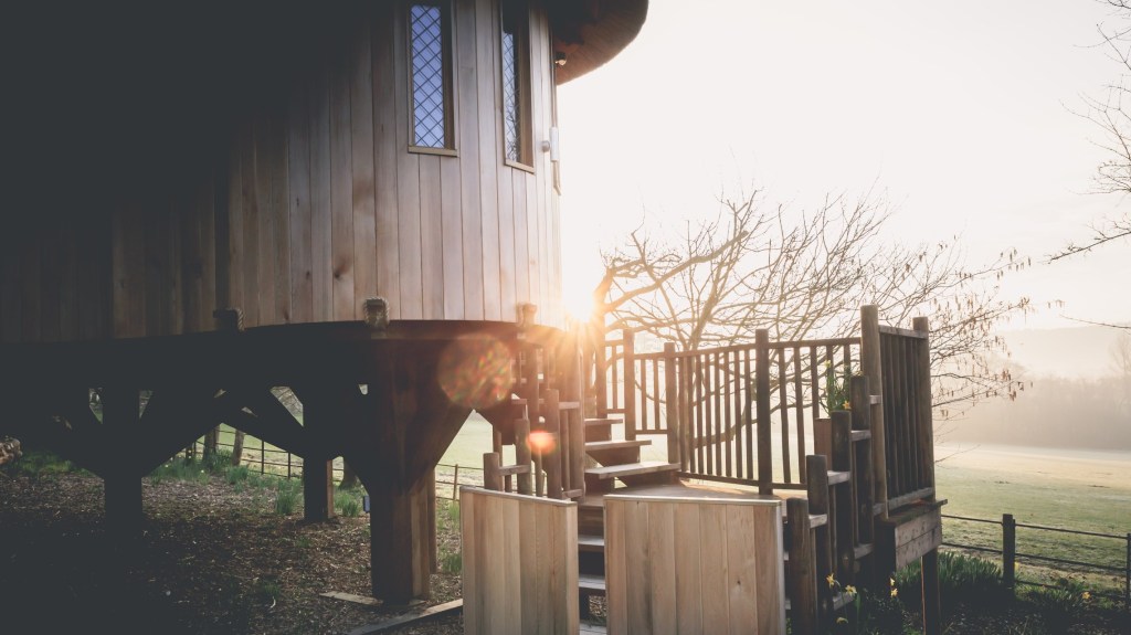 I have longed to spend the night in a treehouse ever since Enid Blyton captured my imagination with The Faraway Tree; a tree full of magic with its topmost branches leading to ever-changing lands above the swirling clouds. As you drive down Deer Park’s own enchanted woodland path, you sense there’s magic afoot. The madness of life is replaced with chirping birds and tea cups clinking.