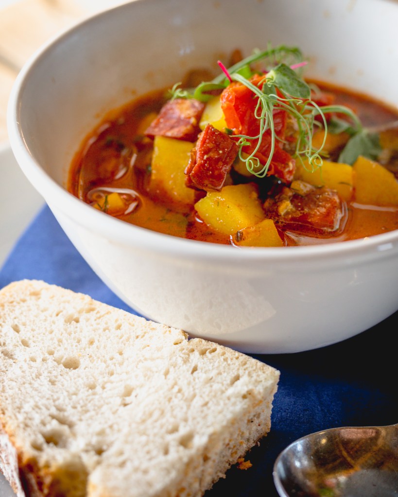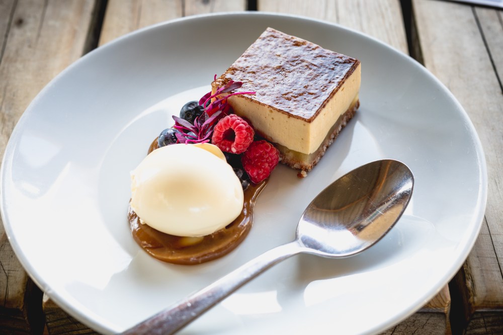 A pear mousse with a decadent butterscotch sauce renders me speechless. It’s velvety and creamy texture is one I’d happily slather over my face at night.