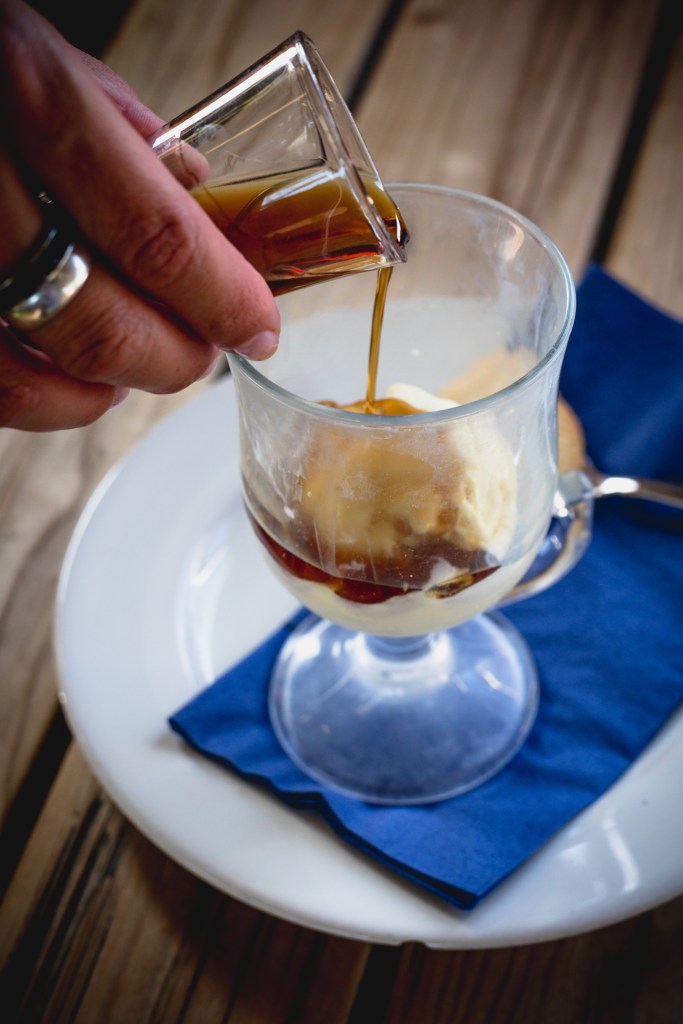 And finally, a glass of vanilla ice-cream arrives, with pedro ximenez sherry to pour over for a seductive finish. It’s perfect in its simplicity and neither of us want to share it.